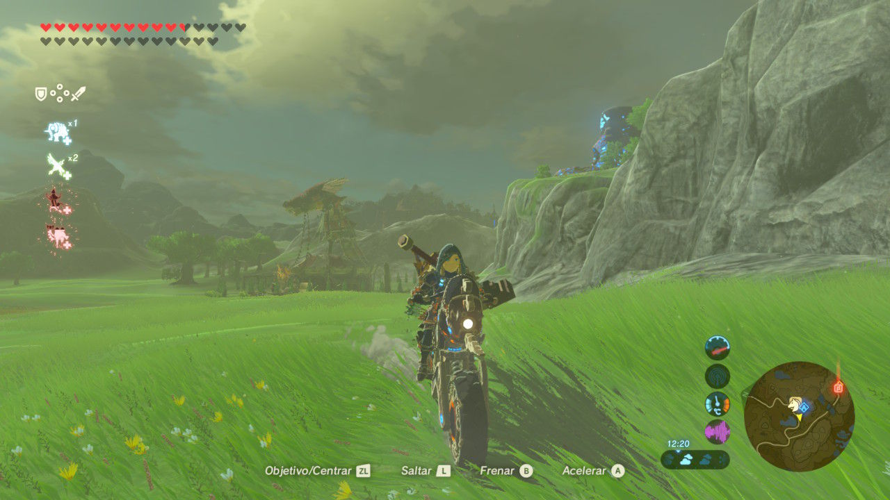 Tal y como ya nos adelantaron en su tráiler, la recompensa por hacer todo esto no es otra que una moto que podemos invocar con nuestra Piedra Sheikah. Gracias a ella podremos recorrer Hyrule a toda velocidad, aunque os avisamos que tendréis que rellenar su combustible con los materiales que tengáis en el inventario. Se trata de un obsequio bastante curioso y peculiar que no esperábamos ver en un juego de esta saga, pero que nos ahorrará mucho tiempo de viaje cuando queramos ir de un sitio a otro sin utilizar los teletransportes.