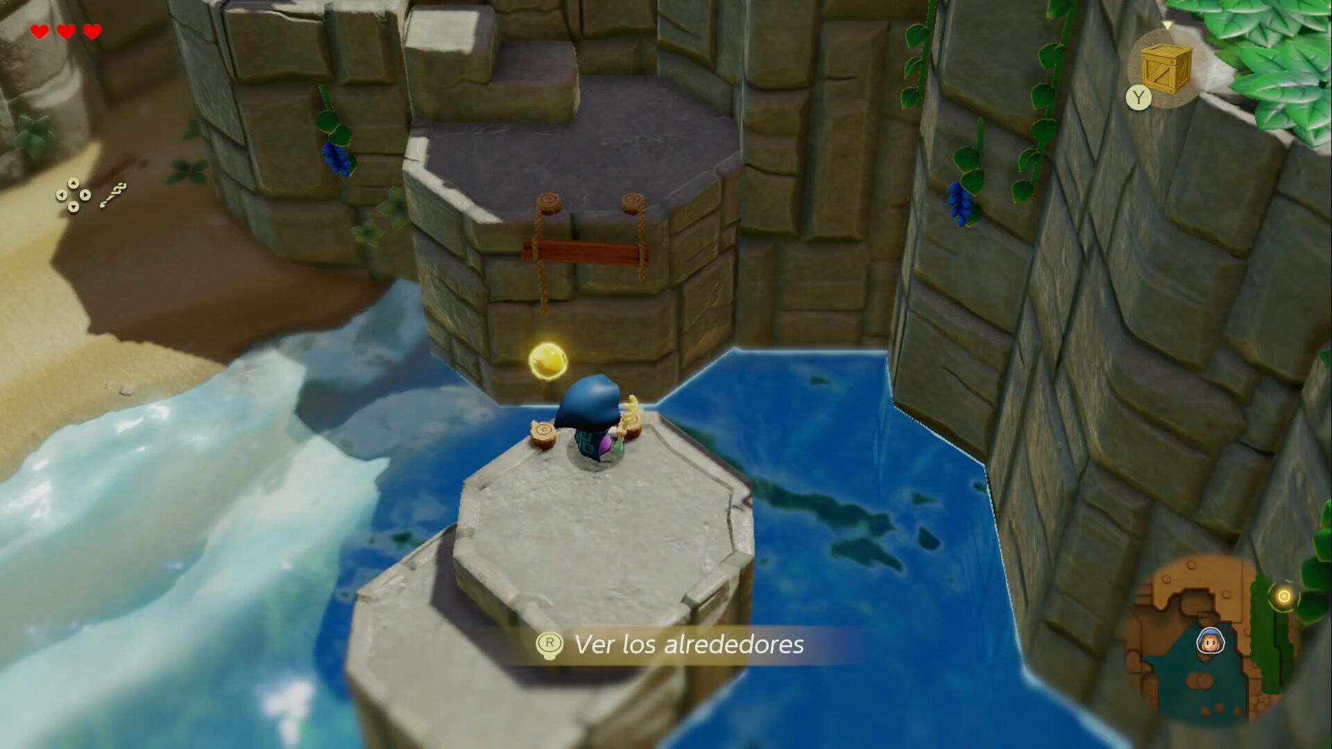 En el caso de los objetos, durante la aventura nos encontraremos por los escenarios elementos que memorizar: una mesa, una cama, un cajón de madera, trampolines… Una vez memorizados, tan solo debemos seleccionarlos en un menú similar al que utiliza Tears of the Kingdom para la Combinación, y los colocaremos ante nosotros. Así, podemos generar pasarelas sobre las aguas, construirnos una escalera y muchísimas otras cosas. Sin llegar a la libertad de los dos grandes Zelda de Switch, hay diferentes maneras de abordar cada rompecabezas: más cuantos más objetos memoricemos, cada cual con sus pesos y propiedades físicas.