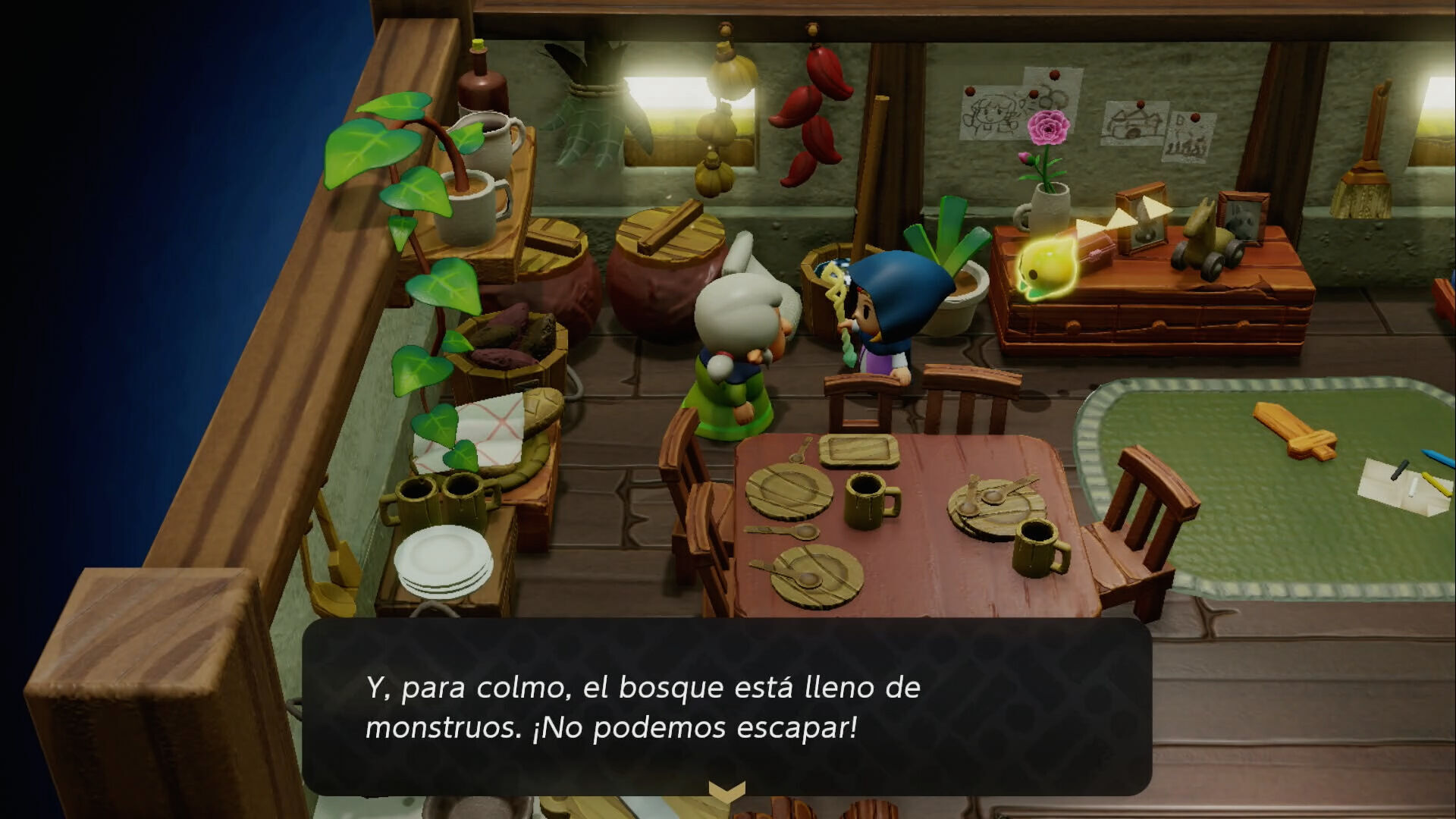 Con todas estas mecánicas se da forma a un título tan simpático a los mandos como en lo audiovisual. Se recupera el estilo del remake de Link’s Awakening, con esos personajes pinypon y ese mundo que parece un diorama gigantesco. Pero aquí hay más detalles en todo: en los monstruos, en Zelda, en las animaciones, en los efectos, y sobre todo, en la decoración de cada uno de los espacios cerrados que navegamos, ya sean hogares o celdas. Eso sí, como en la revisión del juego de Game Boy, hay ralentizaciones que, al menos en esta versión preliminar, se han notar aún más, aunque no es algo que nos haya afectado en el disfrute de la partida, al menos por el momento. Tampoco queremos olvidarnos de mencionar la banda sonora: cualquier fan de la saga se va a encontrar sonriendo en más de una ocasión con las revisiones y los divertidos arreglos de temas inconfundibles.