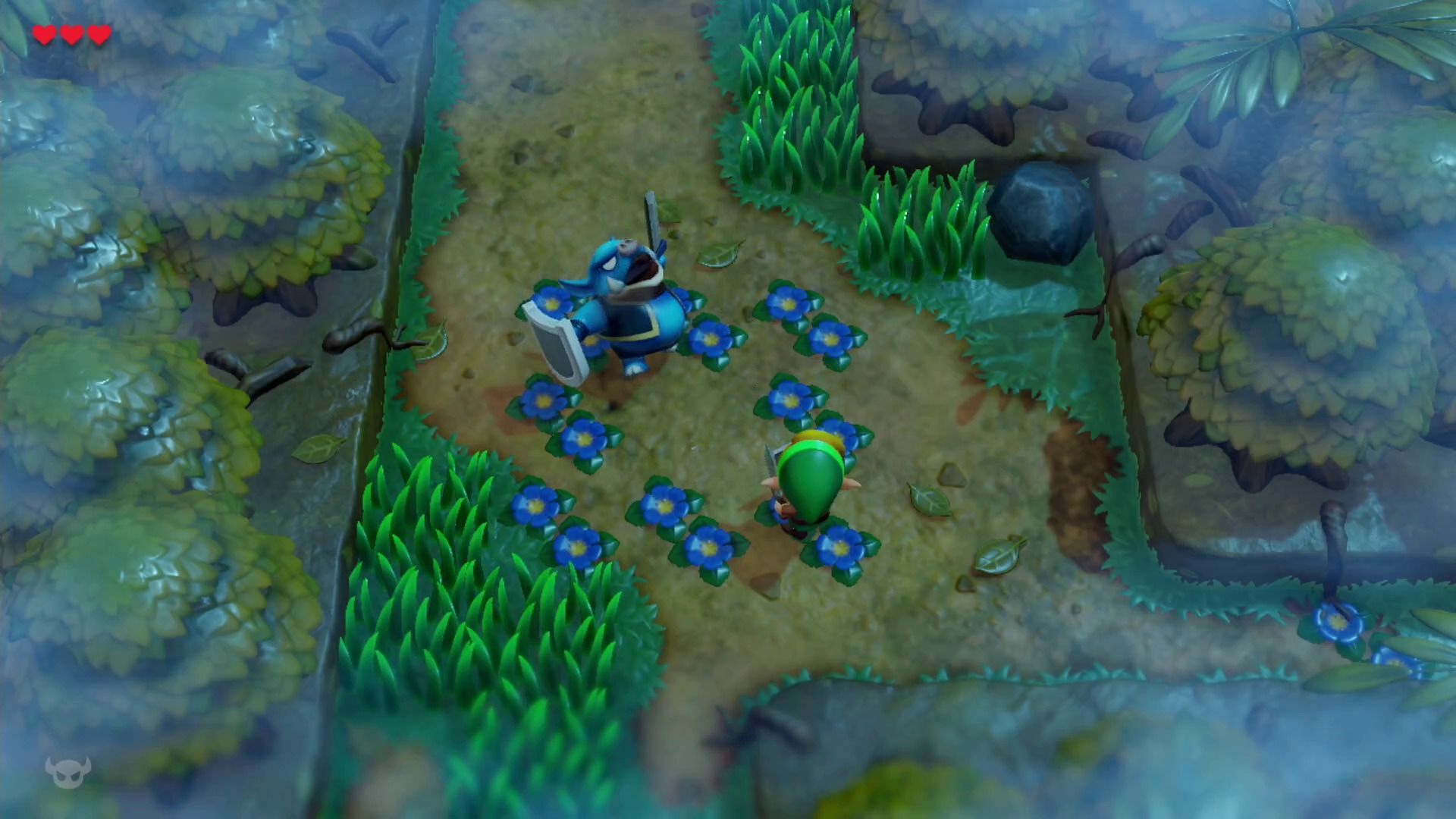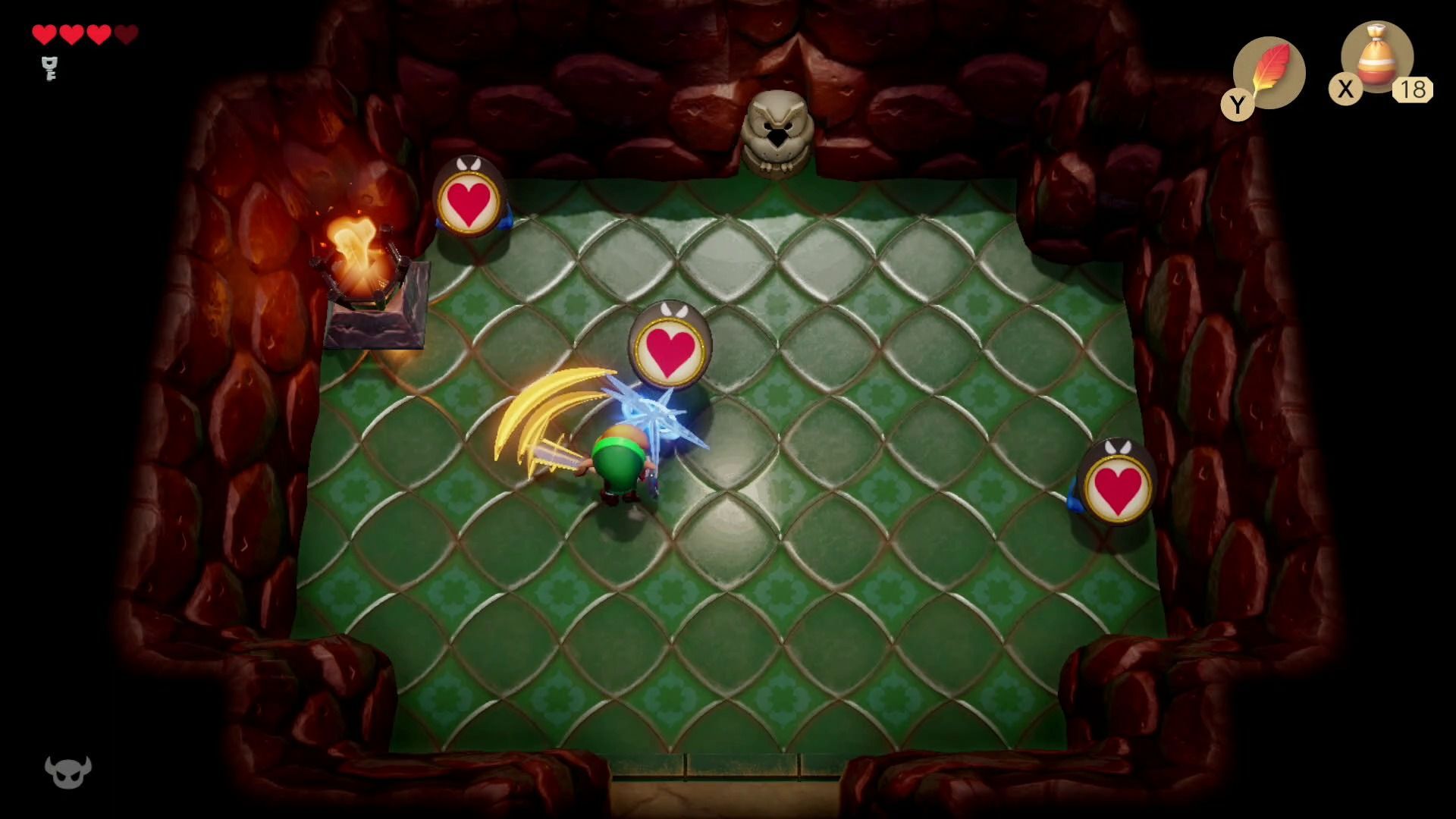 Sobre esta modalidad, cabe destacar que está desbloqueada desde el principio, convirtiendo nuestros primeros pasos por Koholint en un reto realmente complicado, ya que apenas tendremos margen de error. Eso sí, el desafío se equilibra y decae bastante tras la tercera mazmorra, especialmente si nos conozcamos la localización de las piezas de corazón, las botellas para guardar hadas y otros secretos la mar de útiles.
