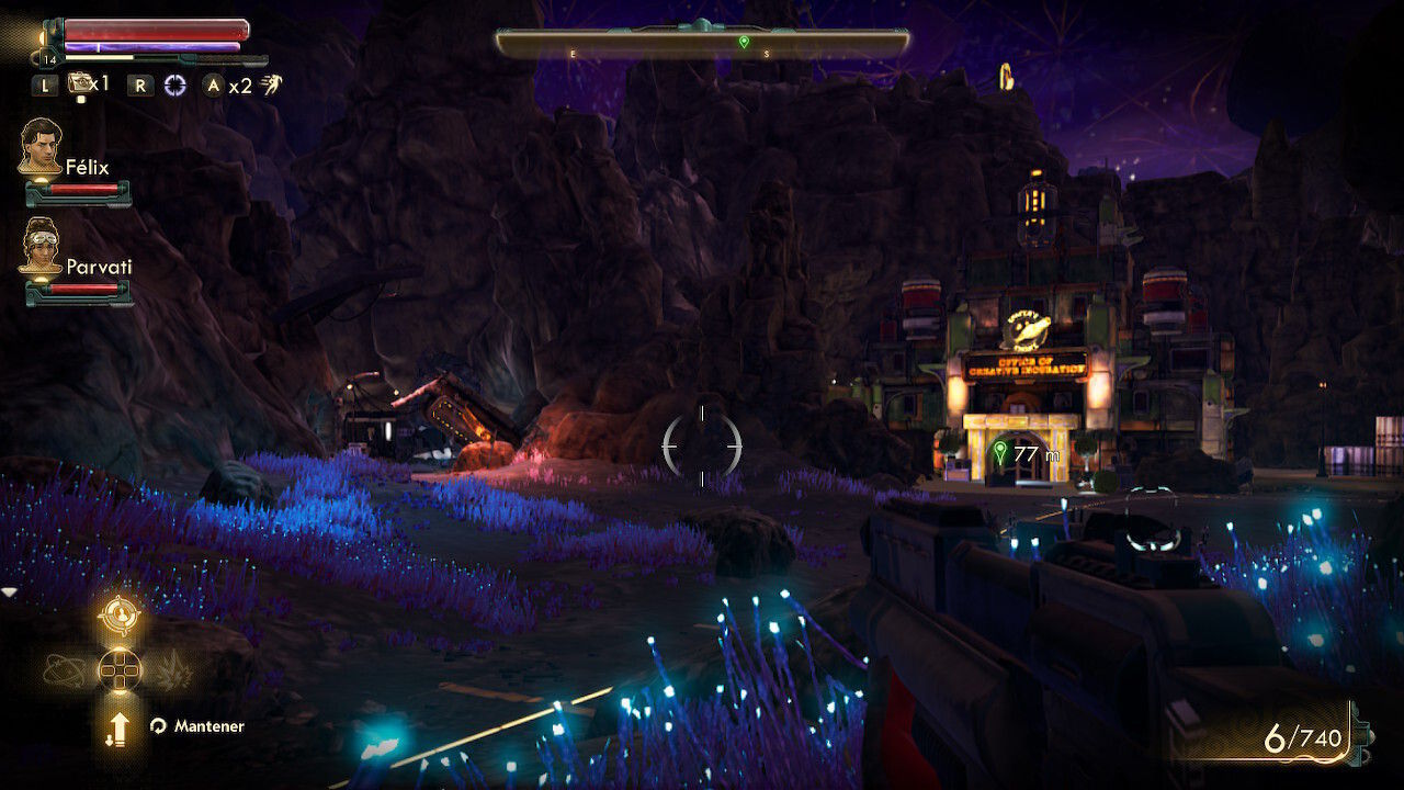 La versión para Nintendo Switch de The Outer Worlds tiene varios problemas técnicos desde su lanzamiento, y a pesar de los parches, los desarrolladores de Virtuos no han conseguido atajarlos todos. Jugar a este título en la consola híbrida sigue siendo una experiencia irregular: por momentos frustrante y a veces impresionante (sobre todo en portátil). Los tiempos de carga, muy frecuentes en todas las versiones pues aparecen cada vez que entramos en una localización, son demasiado largos aquí. La irritante pausa de unos segundos que el juego se toma de cuando en cuando para cargar cuando vamos corriendo por los mundos abiertos son aquí más frecuentes que en la versión de PS4 donde también existen, aunque es cierto que con el parche 1.0.3 son menos habituales.