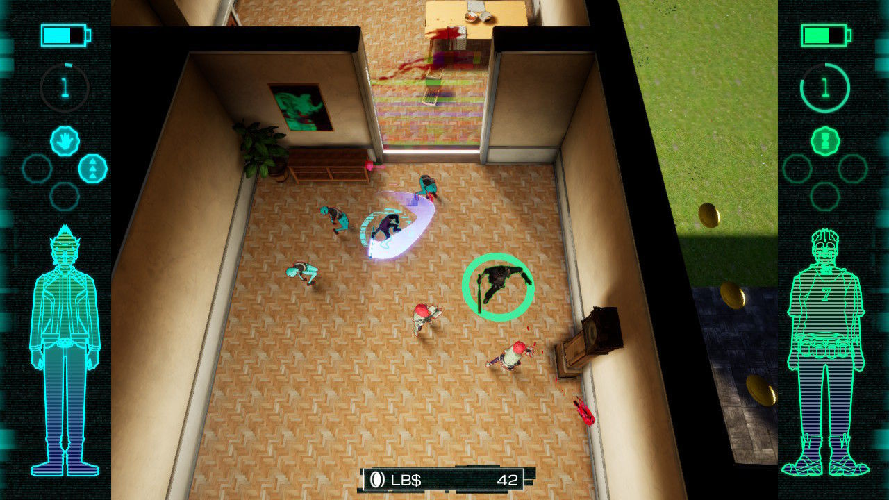 Tuvimos la oportunidad de probar en el modo cooperativo un par de pisos de la torre, y entonces el juego gana en profundidad y diversión. Un jugador controla a Travis y el otro a Bad Man, que va armado con un bate láser. La cámara no se mueve, así que si un personaje desaparece de la pantalla se teletransporta donde está el otro. Ambos pueden combinar sus distintas habilidades para combatir con más eficacia contra el enemigo.
