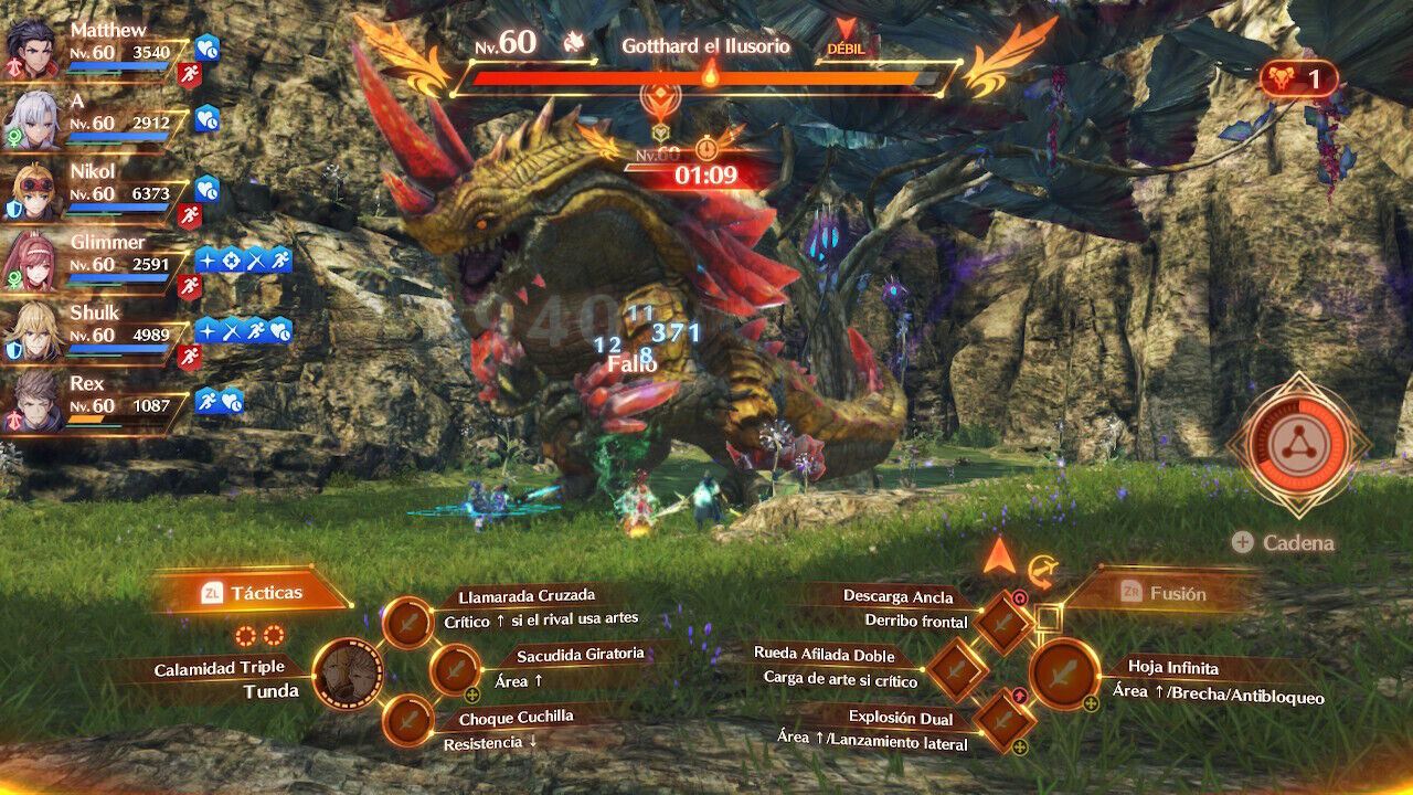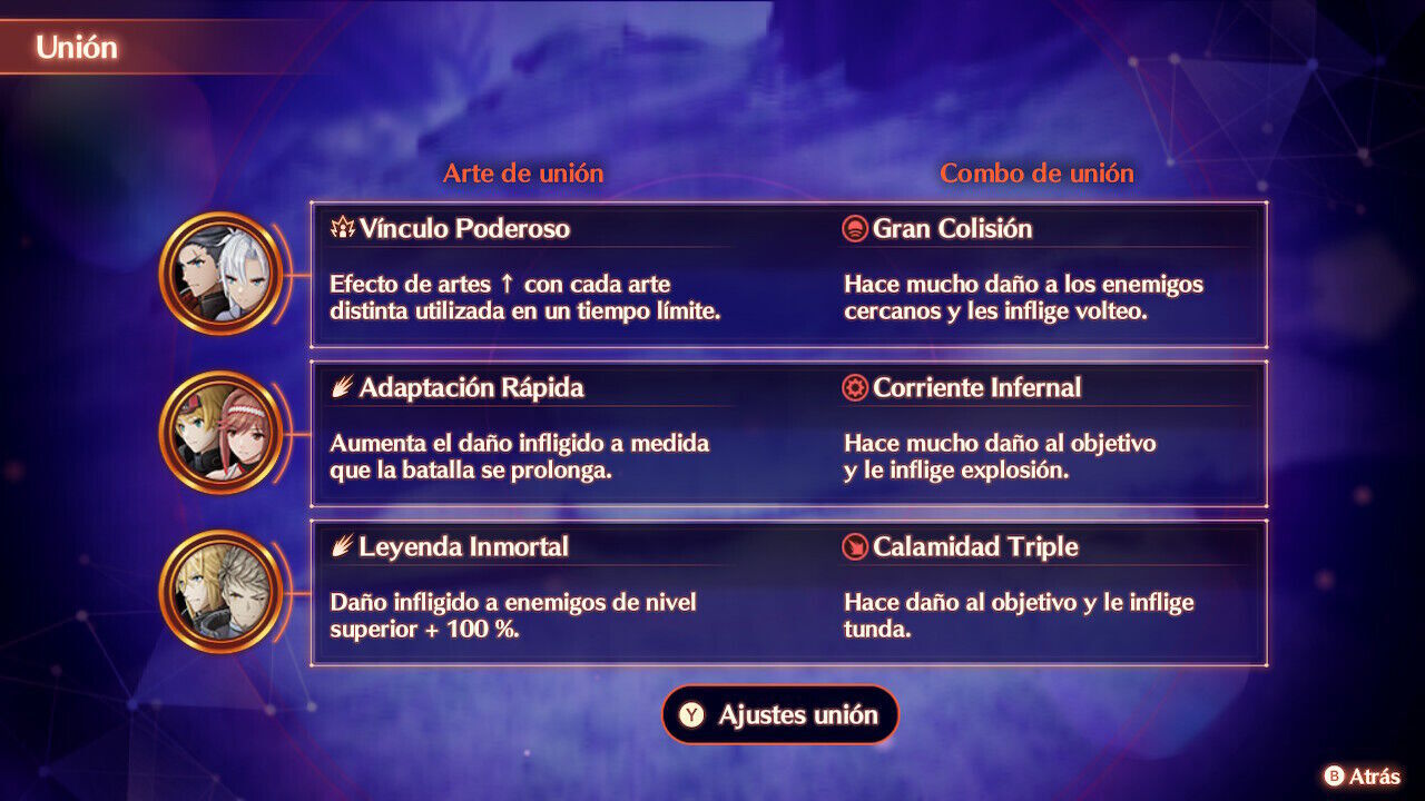 En otro orden de cosas, conviene señalar que aunque los combates mantengan casi todas las mecánicas del juego principal, como las cadenas o la fusión de artes, esta vez no es posible fusionar a nuestros personajes con el poder de Uróboros. En cambio, podremos formar tres parejas (que podemos decidir manualmente) para que puedan poner en práctica un devastador ataque cuando llenemos su medidor de sincronización. Dependiendo de cómo los emparejemos, cada dúo podrá desatar unos efectos u otros, aunque todos ellos sirven para rematar combos en los que hayamos levantado al enemigo en el aire.