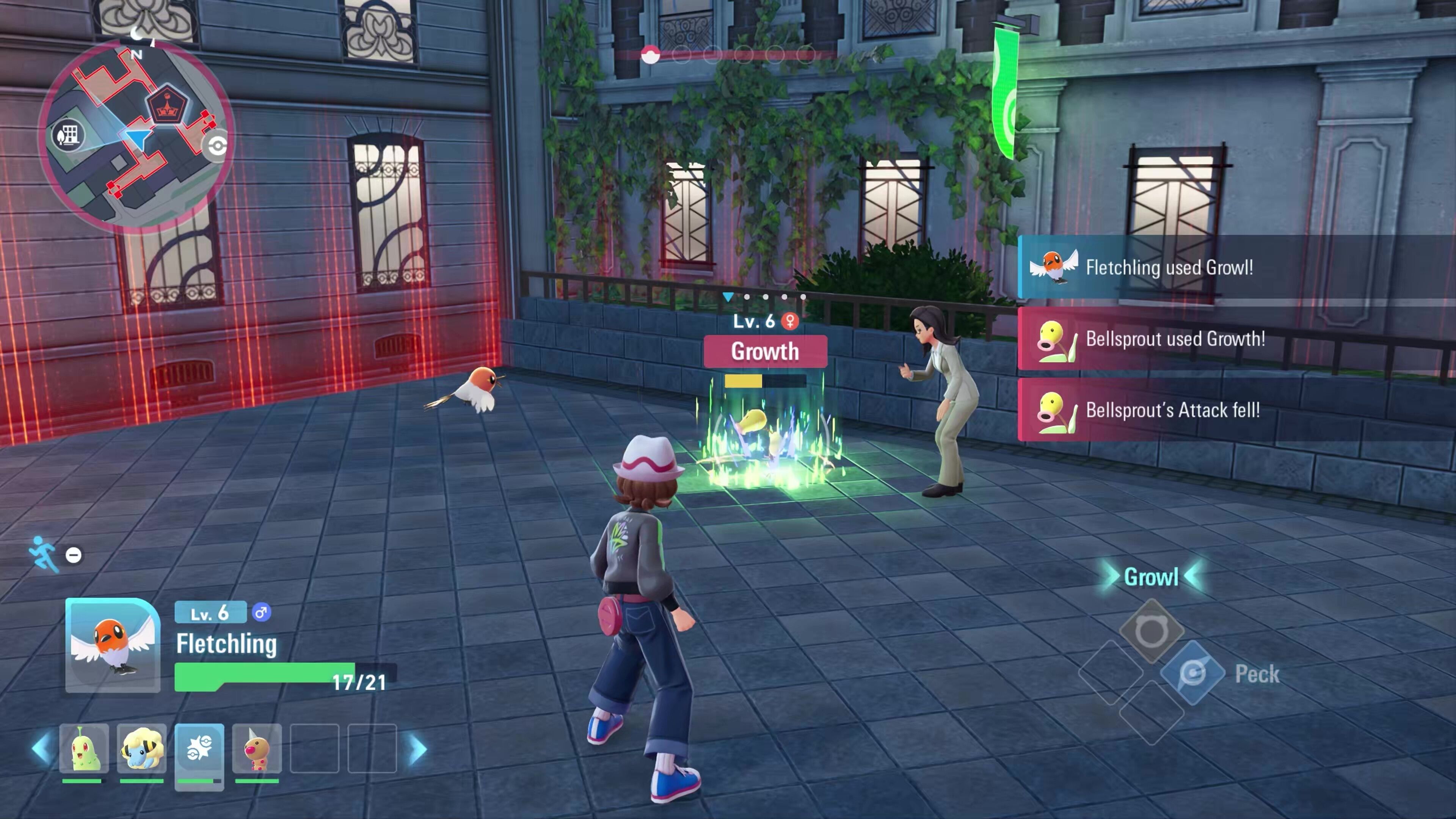 Además, el sigilo, de una forma simple pero eficaz, vuelve a estar presente en este Leyendas Pokémon. Si lanzamos nuestro Pokémon contra el del rival antes de que este nos vea, comenzamos atacando con un ataque crítico. Por el contrario, si el entrenador rival nos detecta antes, hará lo mismo a la última criatura que hayamos utilizado en combate. Los entrenadores contra los que hemos combatido no tienen patrullas de movimiento ni nada parecido, pero se dan la vuelta repentinamente y pueden pillarnos desprevenidos, ya que la partida transcurrió entre las estrechas callejuelas con giros pronunciados de Ciudad Luminalia.