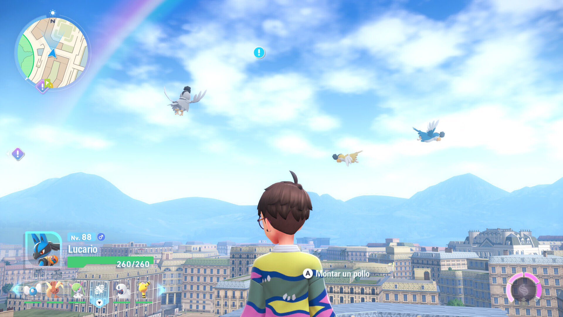 Pero tras cada hito narrativo se desbloquean en la ciudad un puñado de secundarias, encargos breves que divulgan sobre mecánicas del juego quizá desconocidas para los novatos, que presentan Pokémon procedentes de otras entregas, que profundizan en el comportamiento en la ciudad de los monstruos de bolsillo y que, con frecuencia, son chistosas por lo que dicen y por cómo, al aprovechar cómicamente las limitaciones expresivas de los personajes. Una lástima que, por lo general, estas misiones sí sean un paseo a poco que se tenga un equipo bien formado, ya que en Luminalia el nivel máximo sigue siendo el 100.