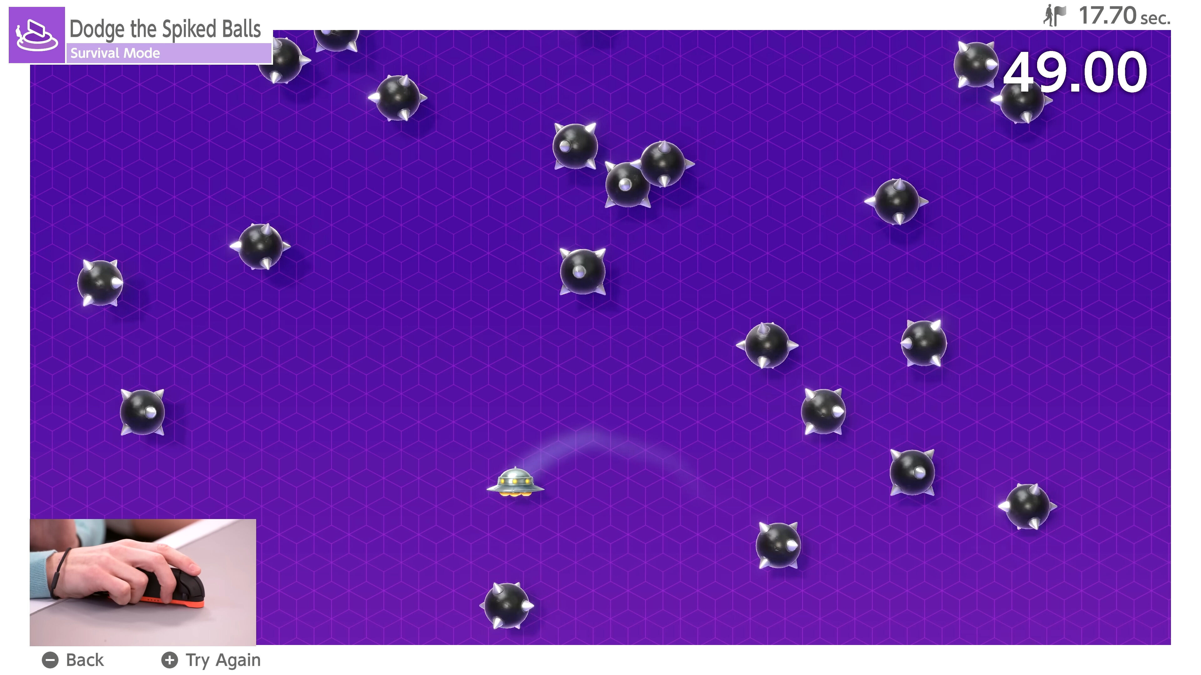 La primera demo con que nos encontramos nos planteaba esquivar una serie bolas con pinchos mediante el manejo de un platillo volante con la función de modo ratón del Joy-Con 2. Podría parecer una demo sin mucho sentido, pero nos permitió descubrir la increíble precisión de esta forma de control. Resistimos casi un minuto esquivando peligros cada vez más numerosos y comprobando cómo podíamos realizar movimientos veloces y precisos que con un stick analógico hubiesen sido mucho más complicados.
