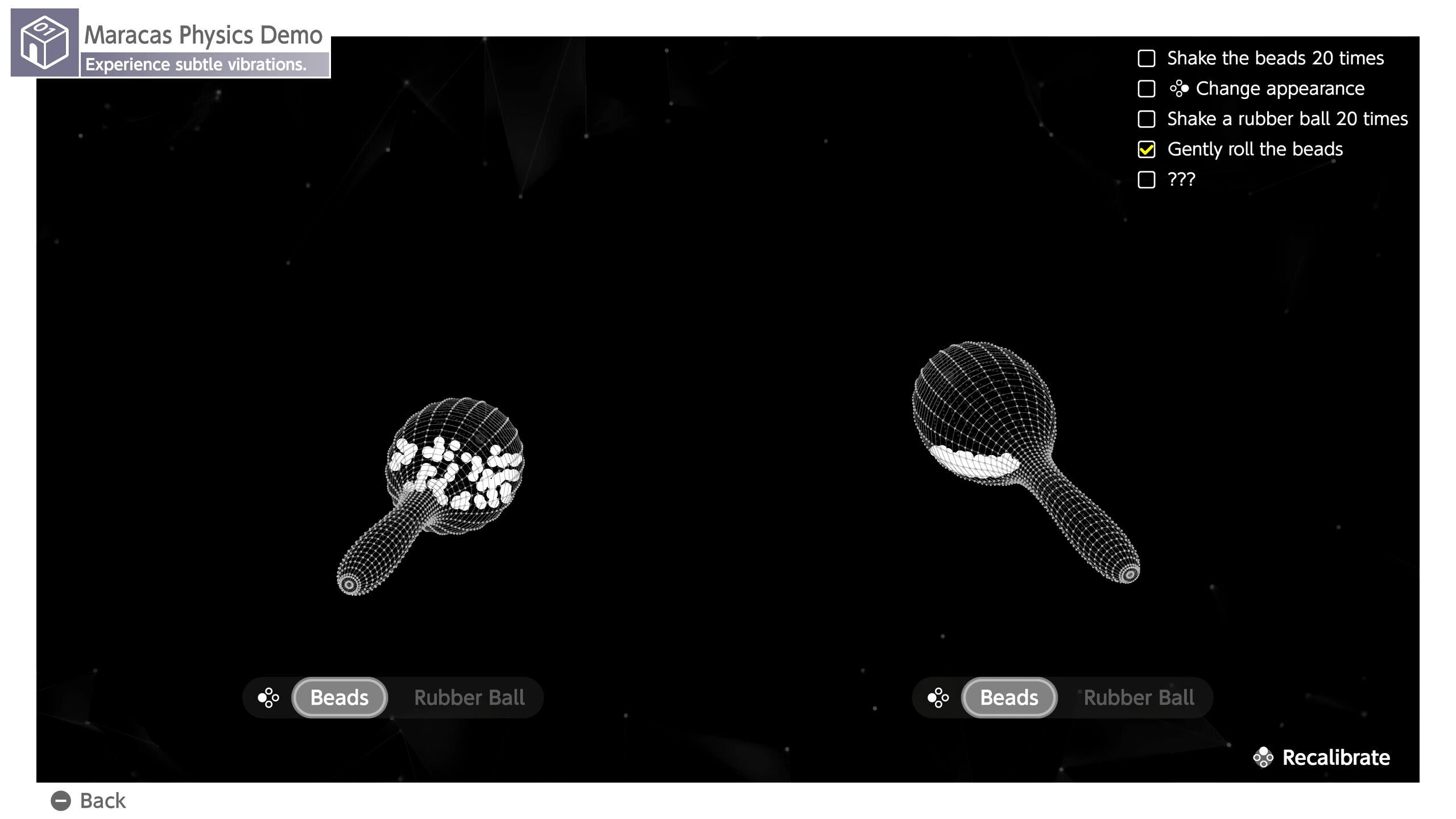 La tercera demo nos sirvió para recordar un minijuego de 1-2-Switch, bastante icónico por lo sorprendente que resultaba. Si recordáis, el Joy-Con emulaba la presencia de unas canicas en el interior del mando, las cuales se movían cuando lo agitabas. Era una de las primeras cosas que nos impresionaron de la vibración HD. En Welcome Tour se han recuperado las sensaciones de dicho minijuego, pero en este caso con la emulación de unas maracas, demostrando que la experiencia podía mejorarse gracias a la vibración HD 2. El punto mágico en este caso llegó cuando pasamos de agitar las "canicas" a una bola de goma, transmitiendo unas sensaciones realmente acordes a los distintos pesos y tamaños.