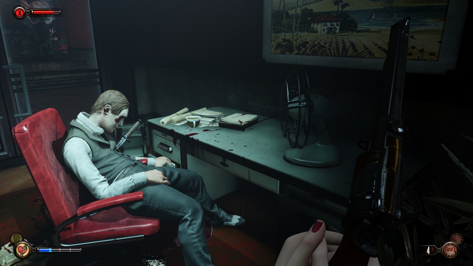 Como ya sabréis este segundo episodio de Panteón Marino nos pone en la piel de Elizabeth, pero despojada de sus poderes, por lo que no podemos abrir grietas dimensionales y somos muy vulnerables ante los enemigos. La primera arma que conseguimos es una ballesta, con la que podemos usar diferentes tipos de virotes, como unos somníferos que duermen a los enemigos, otros que causan ruido y que atraen la atención de los splicers, y unos que explotan expulsando un gas venenoso.