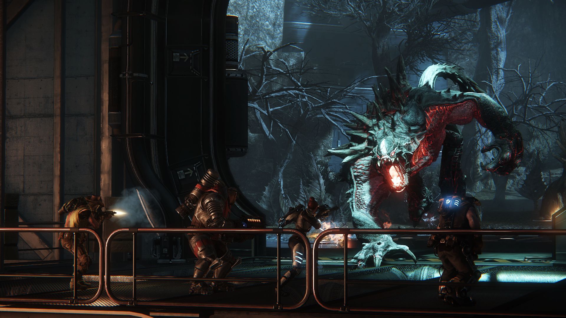 Al comienzo de la partida el objetivo de los cuatro cazadores es claro, acabar con el monstruo, pero el papel de la bestia tiene más matices. Como el título del juego nos da a entender, el monstruo evoluciona durante las partidas, contando con tres formas diferentes. En la primera forma es prácticamente imposible acabar con los cazadores, a no ser que estos sean muy malos y nosotros muy habilidosos, y en estos primeros instantes estamos inmersos en el juego del gato y el ratón. Los escenarios están llenos de extraños animales y monstruos, en el caso del único mapa mostrado hasta el momento estamos en una especie de selva alienígena con una instalación en el centro.