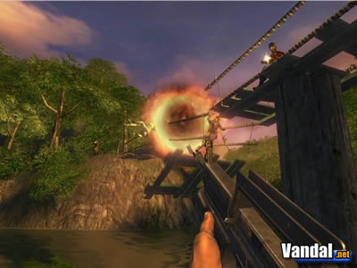 Por último, y como explicábamos al principio del avance, Far Cry sorprendió por su apartado gráfico ya que era capaz de mostrar unos entornos de grandes dimensiones con un nivel de detalles impresionante. Fue por eso por lo que al poco tiempo de anunciarse las versiones para consola muchos pensamos que el nivel gráfico del juego no estaría a la altura del original. Sin embargo, Ubisoft ha demostrado que a Xbox –ya que todas las imágenes pertenecen a esta versión- todavía le queda mucha potencia por exprimir al mostrarnos una versión casi idéntica a la vista en compatibles. El nivel de detalle alcanzado en los enemigos es muy elevado. Los niveles, de un tamaño menor, también poseerán un elevado nivel de detalles, pudiendo disfrutar de algunos de los efectos especiales vistos en el juego de PC (los reflejos en el agua, el humo de las explosiones, etc.).