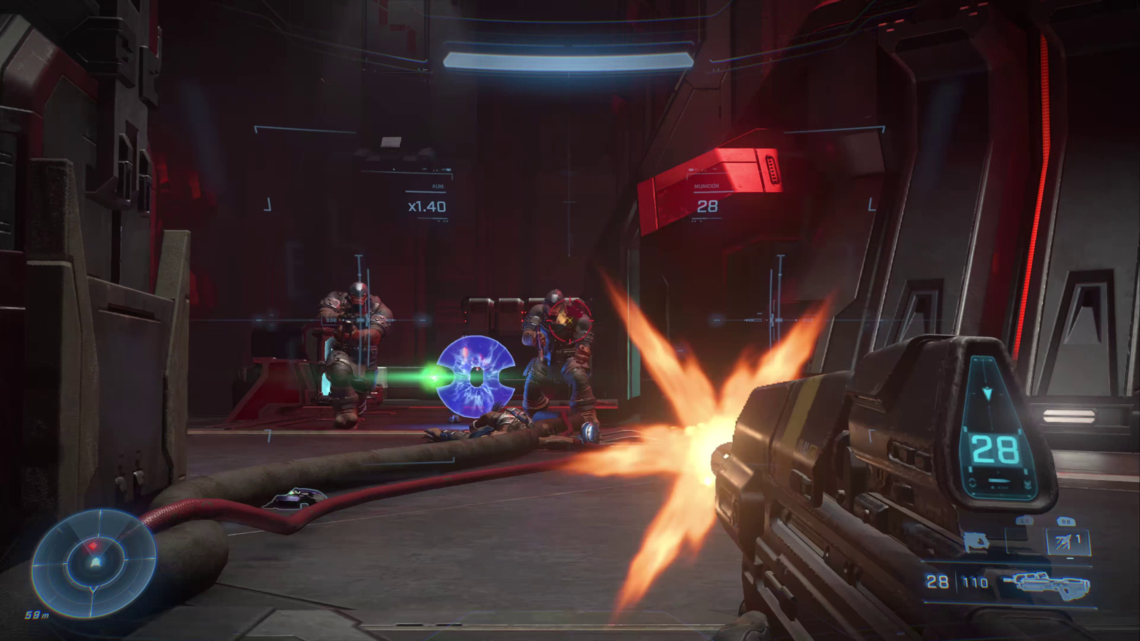 Pero por mucho que nos guste este universo y su historia, aquí al final venimos a pegar tiros y a machacar aliens, donde encontramos la que es, sin duda, la gran fortaleza de esta aventura. Aunque volvemos a disponer de elementos más o menos modernos como la posibilidad de correr y encaramarnos a salientes, lo cierto es que las sensaciones a los mandos nos han recordado mucho a lo que experimentamos jugando a los Halo de Bungie, tanto por el ritmo de los enfrentamientos como por el manejo de las armas y la gratificante sensación de impacto que transmiten. O dicho de otro modo: combatir en Infinite es una experiencia increíblemente divertida y satisfactoria.