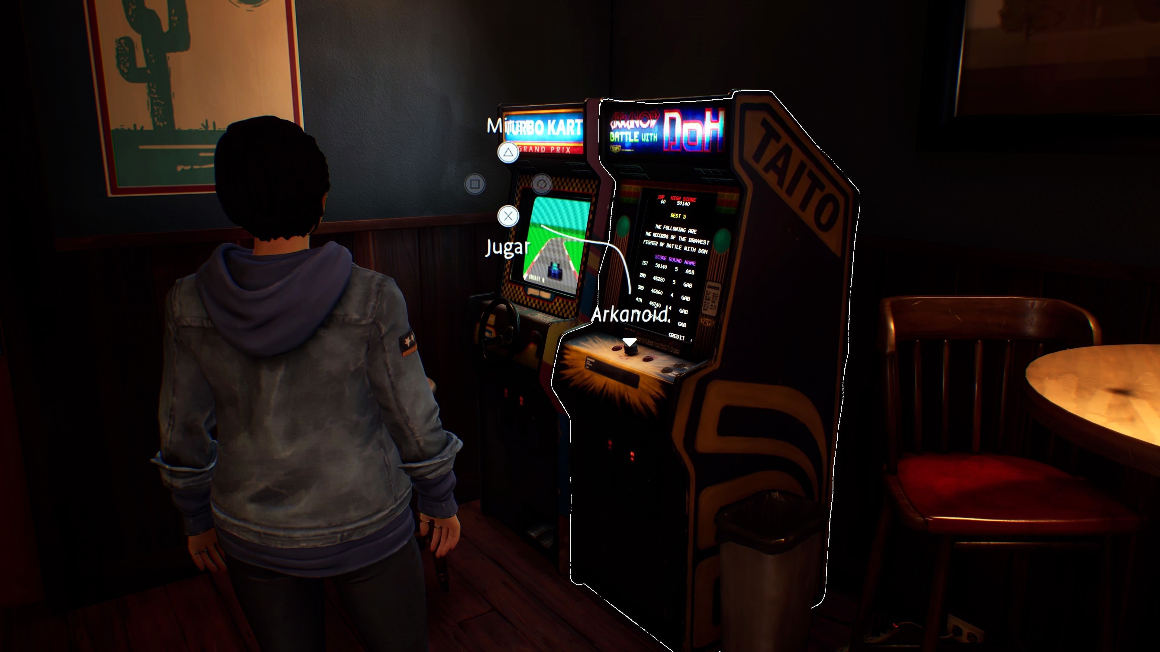 Son mecánicas que están ahí para, primero, dar agencia al jugador en el desarrollo de la historia, y segundo, para permitirle profundizar en el universo del juego en la medida que desee. Y el mismo objetivo tienen los poderes de Alex. Por una parte, su empatía le permite fijarse en algunos de los habitantes del pueblo para identificar en qué están pensando o cómo se sienten; y también en elementos del escenario que desprenden un aura sentimental, lo que desata un flashback sobre lo que ocurrió con ese ítem.