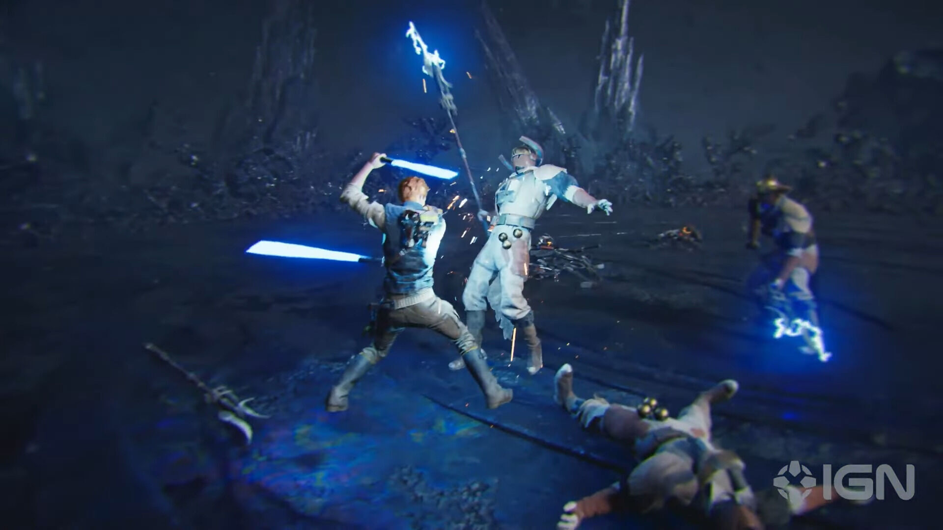 Profundizando un poco más en las cualidades especiales de cada postura, Jason de Heras, director de diseño, ha explicado a IGN que desde el comienzo el jugador tendrá disponibles tres posturas: un sable láser, sable láser dual y doble sable láser. La postura de sable único y la de sable dual estaban presentes en la primera parte, por lo que el peso de la novedad recae sobre la del doble sable láser, que fue incluida en Fallen Order únicamente como un movimiento especial puesto que el equipo de Respawn se quedó corto de tiempo en el desarrollo. En lo que se refiere al uso de las espadas dobles, Asmussen asegura que este sigue siendo igual de accesible que los otros dos estilos, pero que tiene más matices al ser la única postura en la que podemos cancelar las animaciones de inicio de un ataque, así como atacar más rápido y realizar una mayor variedad de combos únicos a cambio de recibir más daño. De esta manera, nos permite ser temerarios y agresivos, pero con un coste alto si cometemos errores.