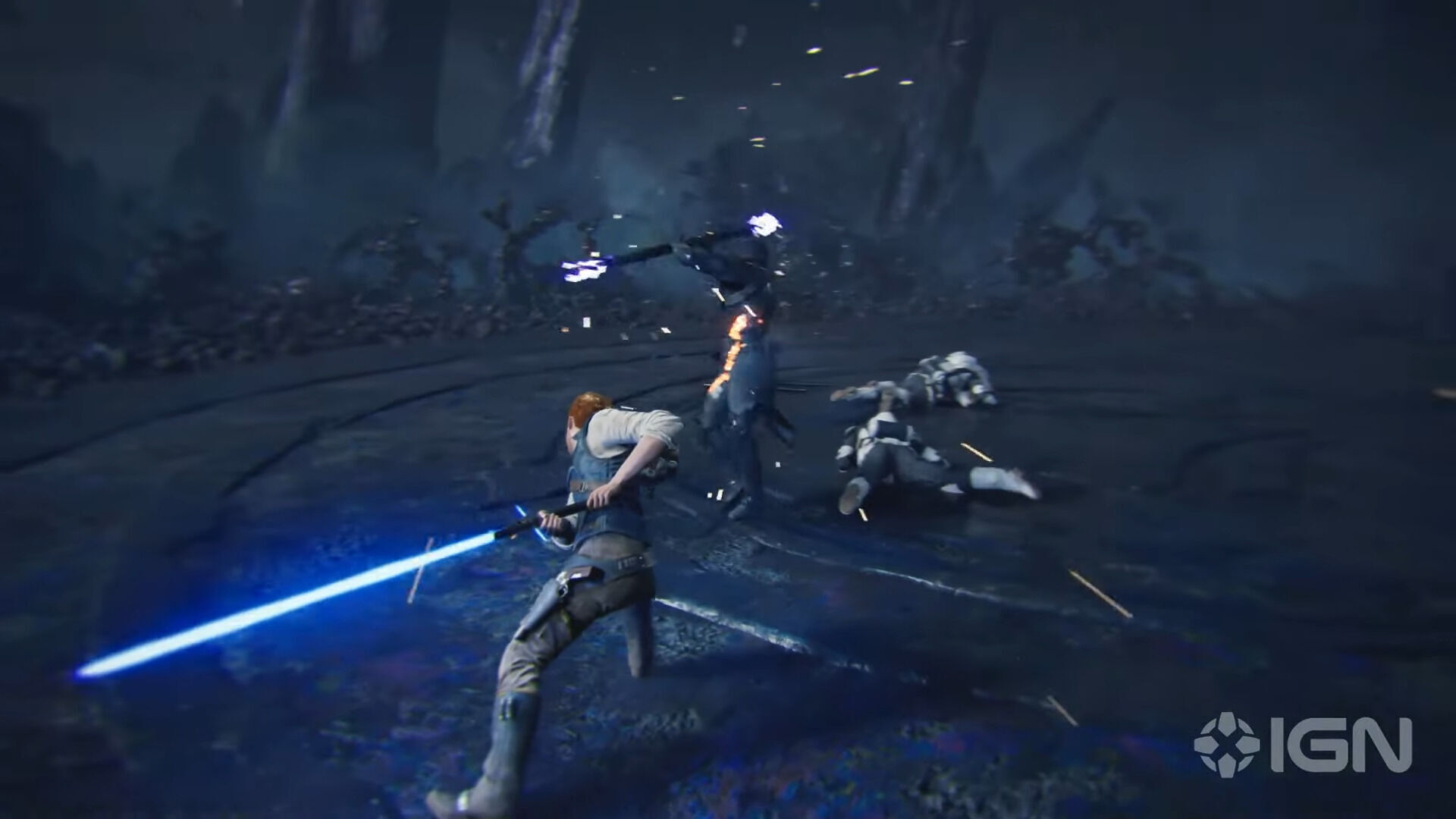 Survivor ofrece hasta cinco poses de combate con el sable láser bien diferenciadas que, tal y como ya hemos destacado, nos obligarán a analizar los comportamientos de los enemigos para escoger sabiamente cuál se adecúa más a la situación. Entre las sorpresas de este nuevo título están la postura de doble sable láser, que permite a Cal usar dos sables láser distintos a la vez, mientras que también podemos encontrar otra que le permite utilizar un blaster y un sable láser a la vez, algo que podría considerarse deshonroso para cualquier Jedi que se precie y que se justifica por el contexto de la historia. "[La introducción de la postura con blaster] realmente habla de dónde encontramos a Cal en esta parte de la historia. Han pasado cinco años desde el primer juego, y los tiempos oscuros siguen en pleno apogeo, así que es un Jedi poco convencional que tiene que hacer cosas poco convencionales. Cal se da cuenta de que tiene que hacer lo que haga falta", detalla Asmussen. Eso sí, no esperéis disparar con el blaster como si se tratase de un shooter en tercera persona ya que el foco sigue siendo el combate cuerpo a cuerpo y a corta distancia.