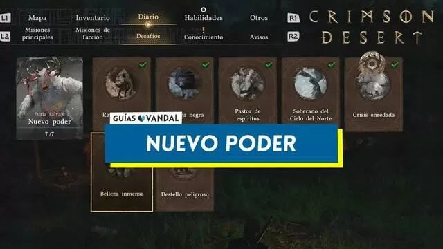 Como parte de sus desafíos de Exploración, en Crimson Desert nos encontramos con lo que el juego llama Nuevo poder (o Furia salvaje - Nuevo poder). Estos desafíos nos piden eliminar a ciertos enemigos especiales que están relacionados con misiones secundarias puntuales a los que te enfrentarás en la forma de jefes finales.