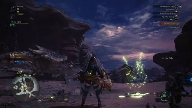 La Encargada nos explica que pasa algo en el Yermo de Agujas, así que ve en Expedición a dicha zona. Una vez estés ahí, dirígete hacia la Zona 2, donde encontrarás un rastro de "Rathian extraña", que por supuesto debes seguir.