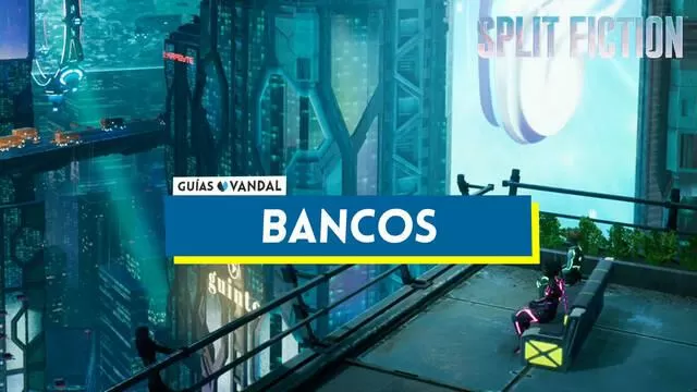 El primer banco se encuentra en el Capítulo 2: Venganza de Neón, en concreto en la parte 7, Vida en la gran ciudad. Nada más usar los puntos de gancho en la azotea de las piscinas encontrarás el banco. Está en tu camino, no tiene pérdida.