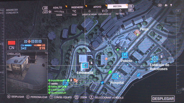 Al oeste del mapa encontramos la embajada, el punto Echo esta sobre la entrada, desde el edificio se puede cubrir bien la zona, es muy habitual encontrar algún tanque enemigo en este objetivo, colocar unas minas viene bien, un poco más noreste esta una de las bases de equipo, por dentro son dos edificios con varios sitios para esconderse, inspeccionar la zona con precaución.
