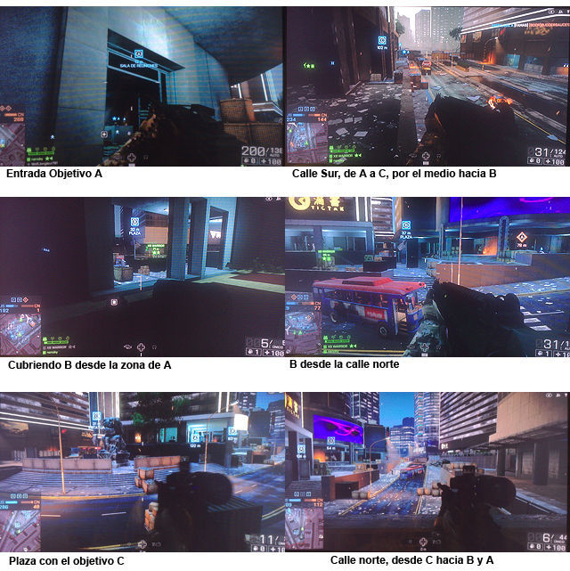 Este mapa se desarrolla en una ciudad, combate urbano de infantería, es el único en el que es de noche, tiene 5 puntos de control, la zona de B, C, D es donde se concentra todo el combate, A y E están cerca de las bases respectivamente, gracias a los helicópteros es fácil situarse en las muchas azoteas que tiene el mapa.