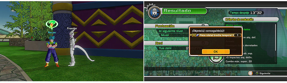Completando cualquiera de estas misiones nos darán el Cristal en cuestión si no lo tenemos, cuando tengamos los 5 regresamos al Nido del tiempo y hablamos con Trunks para que nos de la nueva Saga.