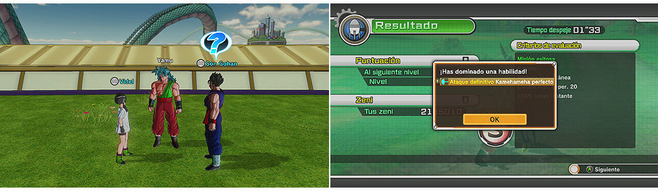 *En su entrenamiento la pareja nos pedirán el Alma Z ¡E-Estoy bien!, la conseguimos en la famosa misión secundaria Nº47, cuando pasamos el primer portal hacia los Glaciares, luchamos contra Mr. Satán, Videl y Bu, si nos dan Equipo tenemos posibilidades de conseguirla.