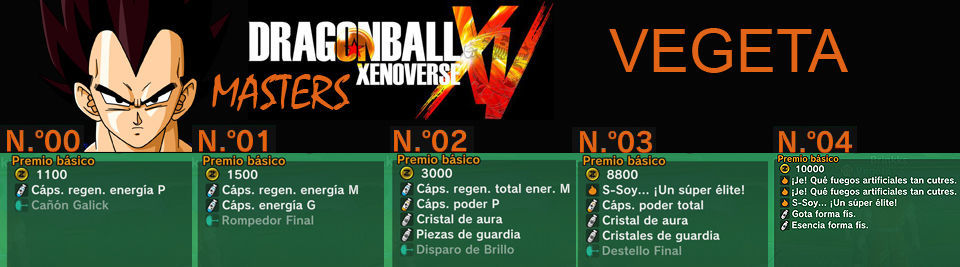 Aquí la lista de los 12 Maestros con las recompensas de cada prueba