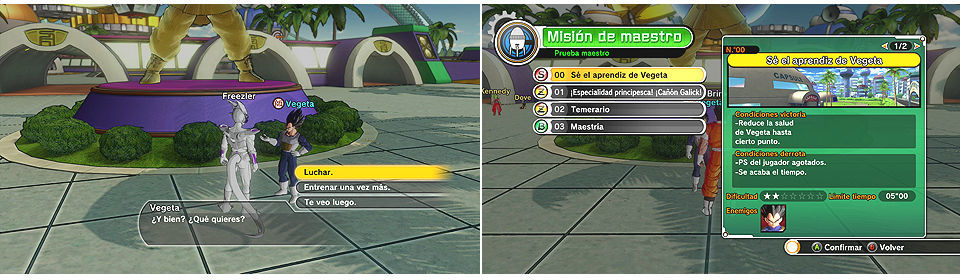 Lección 1 - ¡Especialidad principesca! - Derrota a Vegeta con cañón Galick.