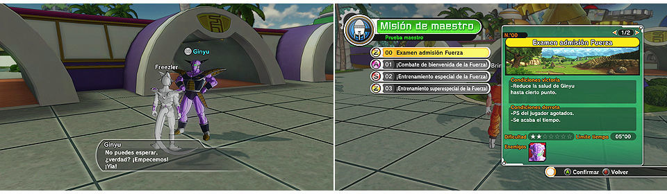 Lección 0 - Examen admisión Fuerza - Reduce la salud de Ginyu hasta cierto punto.