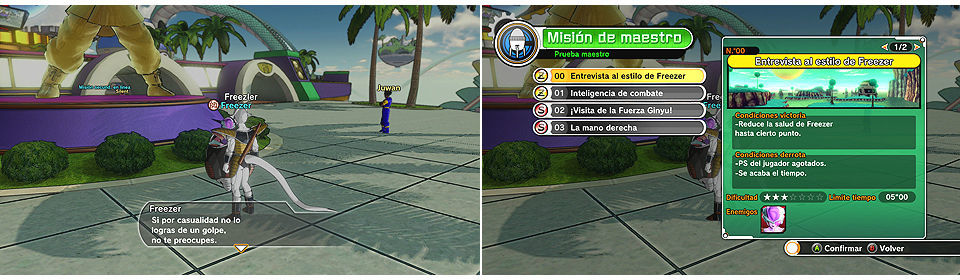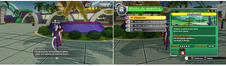 *En su entrenamiento Freezer nos pedirá Pieza de Regeneración Total, este item lo podemos conseguir recogiendo objetos en las misiones secundarias, en la 08 cogiendo todos lo más seguro es que lo consigamos.