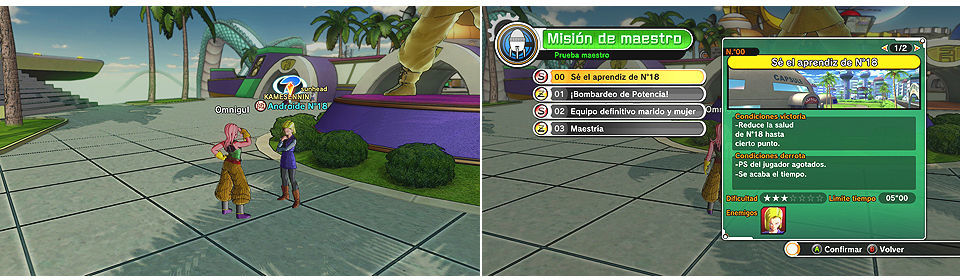 Su entrenamiento cuenta con 4 misiones básicas y una lucha final a muerte. Cuando nos hagamos aprendices de cualquiera siempre saldrán frente a la Estatua de Mr. Satán en el Puerto Máquina del tiempo.