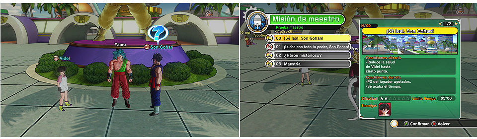 Lección 0 - Sé Leal, Son Gohan! - Reduce la salud de Videl hasta cierto punto.