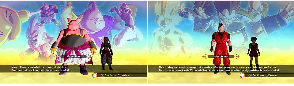Femenino : pueden usar Ayuda Z con más frecuencia, mejor recuperación de ki y resistencia, menos salud
