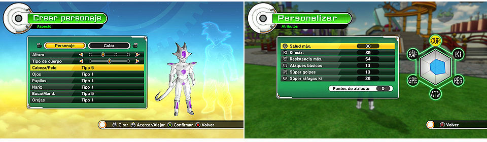 Igualmente pasa con el peso, cuanto más peso mayor ataque de Super Golpes y ataques básicos, cuanto menos mayor Super ráfaga Ki.