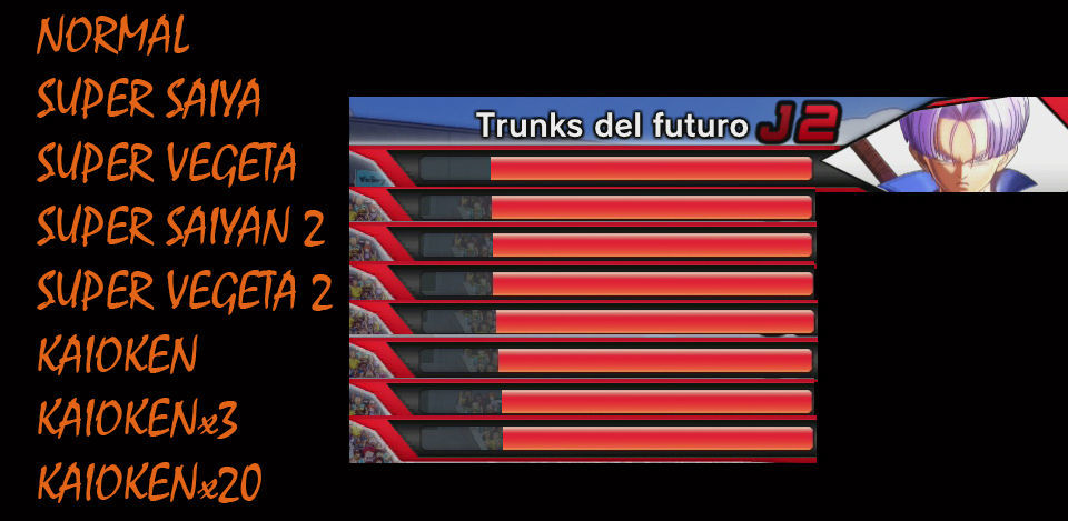 Estás 3 primeras incrementan nuestras estadísticas más que el cualquier transformación de Super Saiya, pero reduce la resistencia, el Kaioken x20 hace que los movimientos evanescentes no nos cuesten barra de resistencia, si tenemos un personaje con alto poder en ataque básico esta transformación nos va a venir muy bien (eso si hay que tener una buena barra de Resistencia para usarla y combinarlo con Alamas Z que aumenten nuestros ataques, o resistencia).