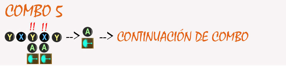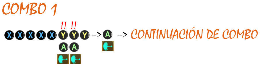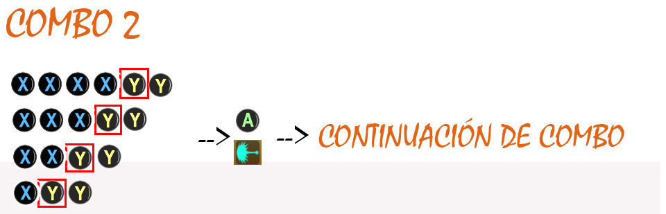 Monstruo Femenino - El antepenúltimo X realiza un Lanzamiento Horizontal, el penúltimo X un Lanzamiento Horizontal (diagonal elevado) y el último Y un Lanzamiento Vertical hacia abajo (con Y X X X X, a veces falla).