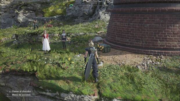 Hay 3 cofres. Uno está al norte del punto de viaje rápido, en un andamio de madera. Contiene una esmeralda. Al oeste, junto a un campamento, puedes escalar un muro al norte. Arriba hay otro cofre con 2 colas de fénix. Desde aquí arriba, si miras al sur, verás que la roca que hay debajo está hueca. Ve a cualquiera de los circuitos de salto cercanos y planea con el chocobo hasta ahí para colarte y conseguir una panacea.