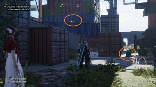 Muévete al sur desde la entrada norte, rodea la máquina y verás los dos primeros cofres, uno al pie de una máquina y otro sobre un contenedor.