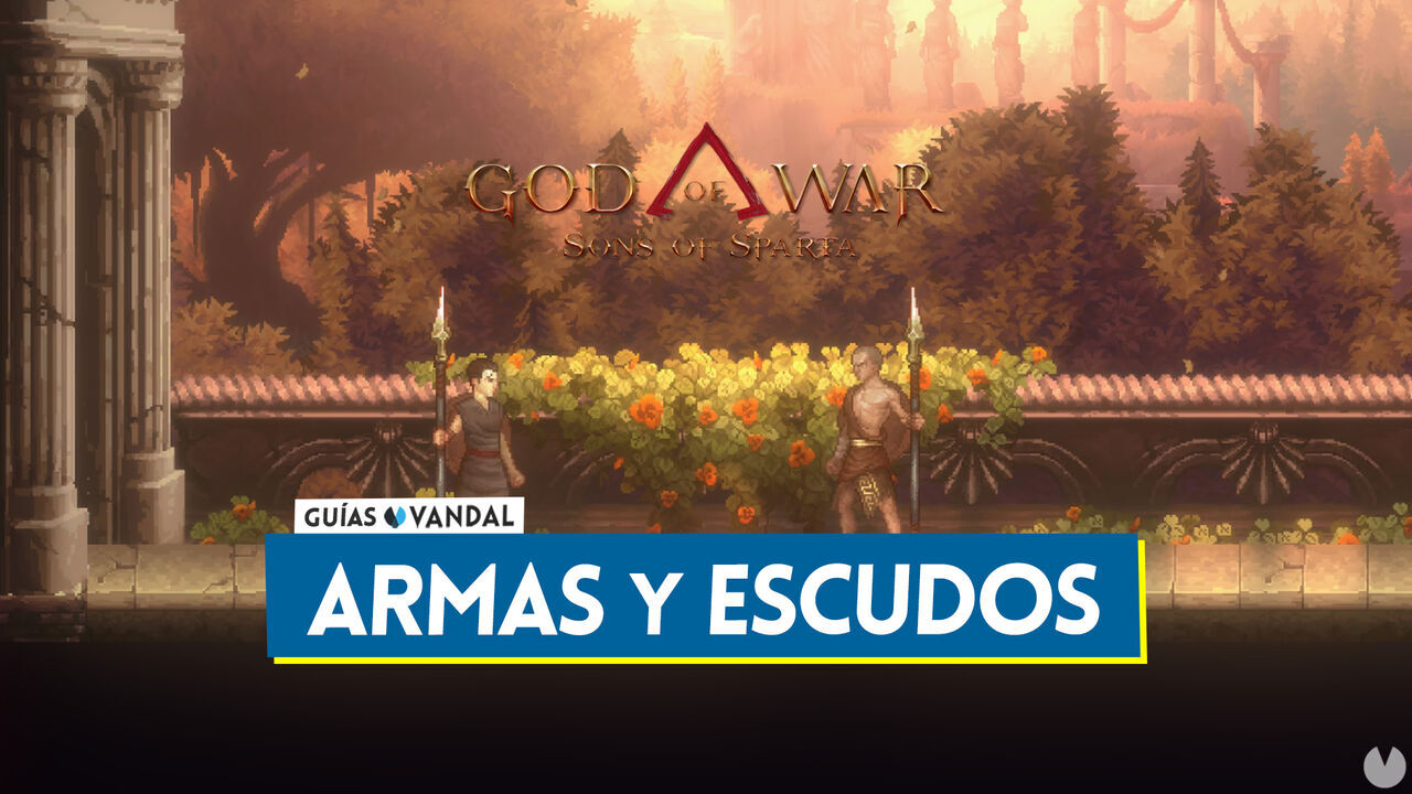 En God of War Sons of Sparta el joven Kratos dispone principalmente de una lanza dory espartana y un escudo aspis espartano para enfrentarse a los enemigos.