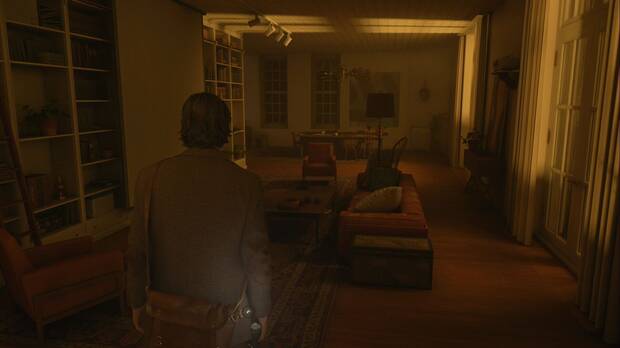Avanza hasta el pasillo y entra por la primera puerta para encontrar unas fotos sobre la cama. En el salón, interactúa con la cámara de la mesa para que Alan mencione que hay que dar con la tarjeta de memoria.