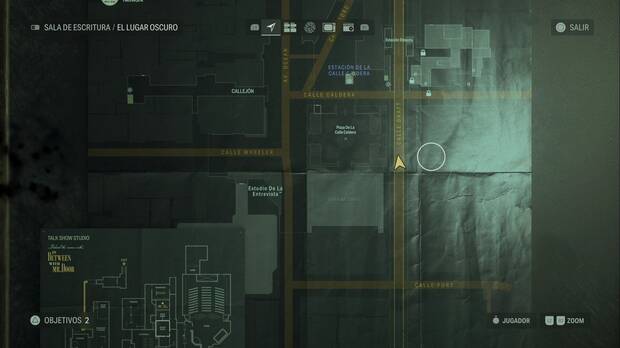 Ve a la esquina suroeste de la Calle Wheeler, al oeste del Estudio de La Entrevista. Si te acercas con la linterna encendida, deberías ver una flecha señalando hacia abajo.