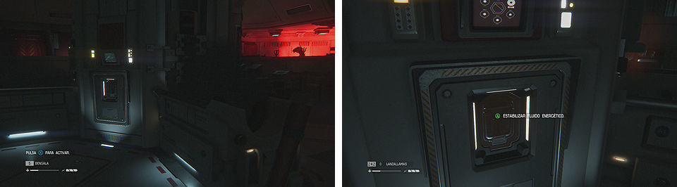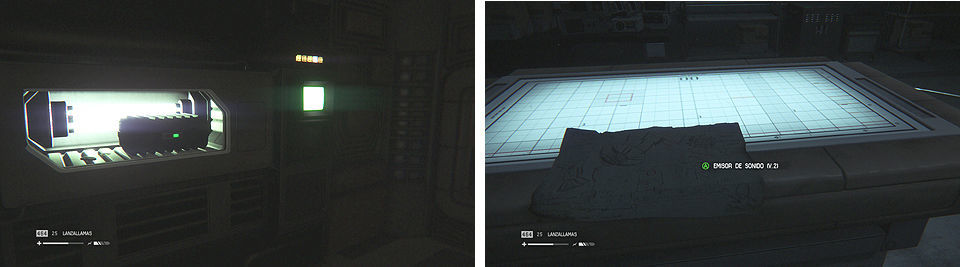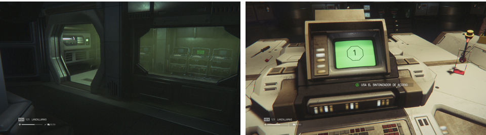 2. Una vez hecho esto tenemos que activar el sistema de alarma principal en el Laboratorio de análisis, usamos el Sintonizador sobre el panel que encontramos. Cuidado que al hacerlo y activar la alarma el Alien muy probablemente aparezca en la sala.
