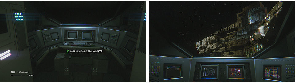 1. Bien, lo primero que tenemos que hacer es reactivar los sistemas de la nave, avanzamos por los oscuros pasillos de la nave hacia arriba, hasta llegar a una sala con un Terminal y una cámara para recoger ítems. En el terminal nos dan el código "4510" para seguir avanzando y llegar hasta la zona "Distribución de Energía", donde usamos los 2 generadores manuales y el Sintonizador de acceso sobre la consola central que sale tras activar los anteriores para restaurar los sistemas básicos de la nave.