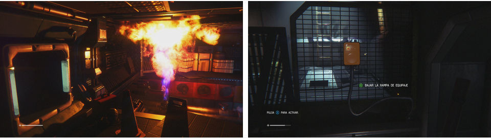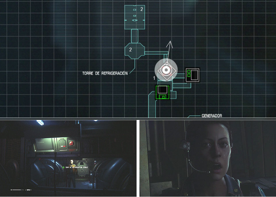 2. Llegamos hasta la Torre de Refrigeración donde en una secuencia el Alien mata a Axel y tenemos que huir hacia el Tránsito, cuidado con hacer mucho ruido o el Alien nos atrapará, activamos el Tránsito y esperamos a que venga en silencio