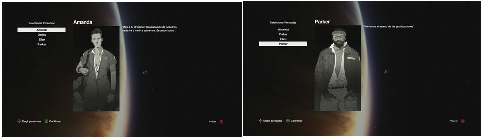 Solo disponible Amanda, pero si tenemos el DLC tripulación Prescindible, también podremos pedirnos a Ellen, Dallas y Parker, cada uno con su diferente equipamiento.