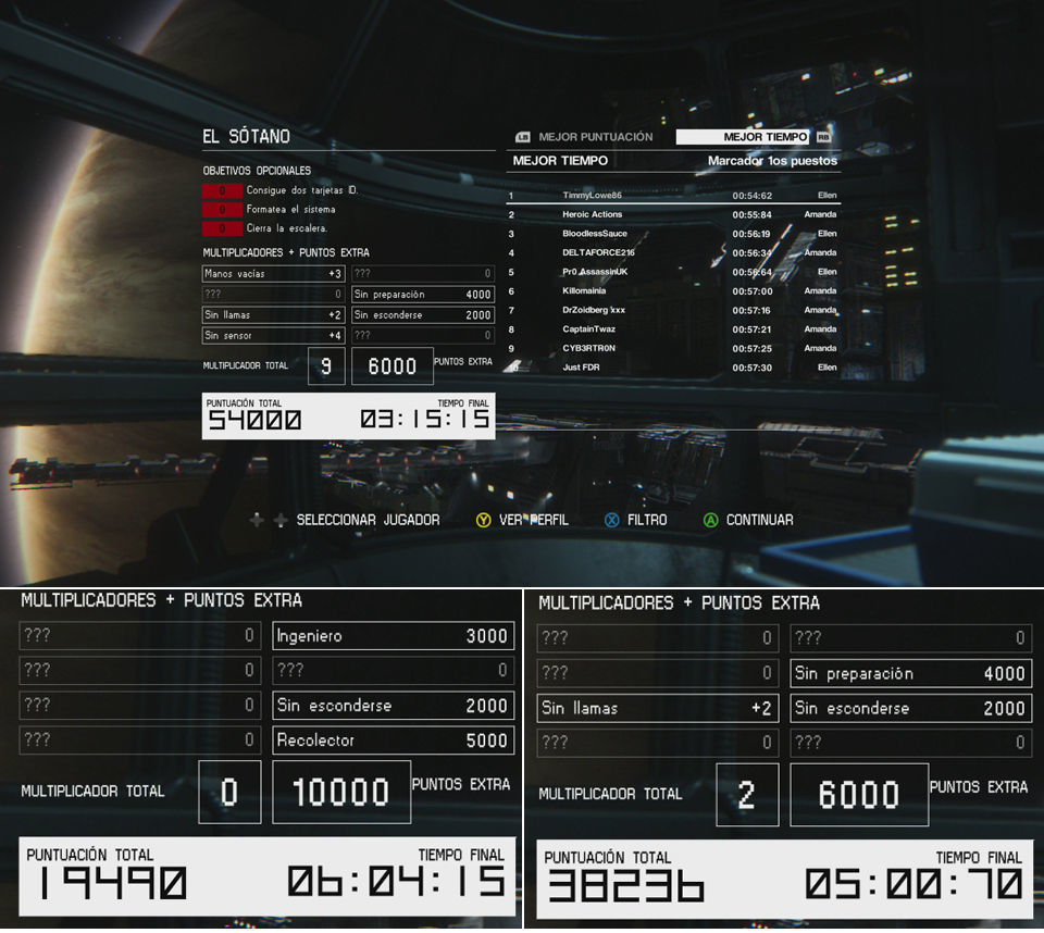 Sabiendo esto lo importante es hacer un tiempo muy muy bajo y aprovechar los multiplicadores para alcanzar una puntuación competente, aunque aquí juega mucho la suerte, cuando ya tengamos nuestro trazado perfectamente estudiado es cuestión de no encontrarnos al Alien de cara y que nos mate, mucho cuidado con los agujeros del techo.
