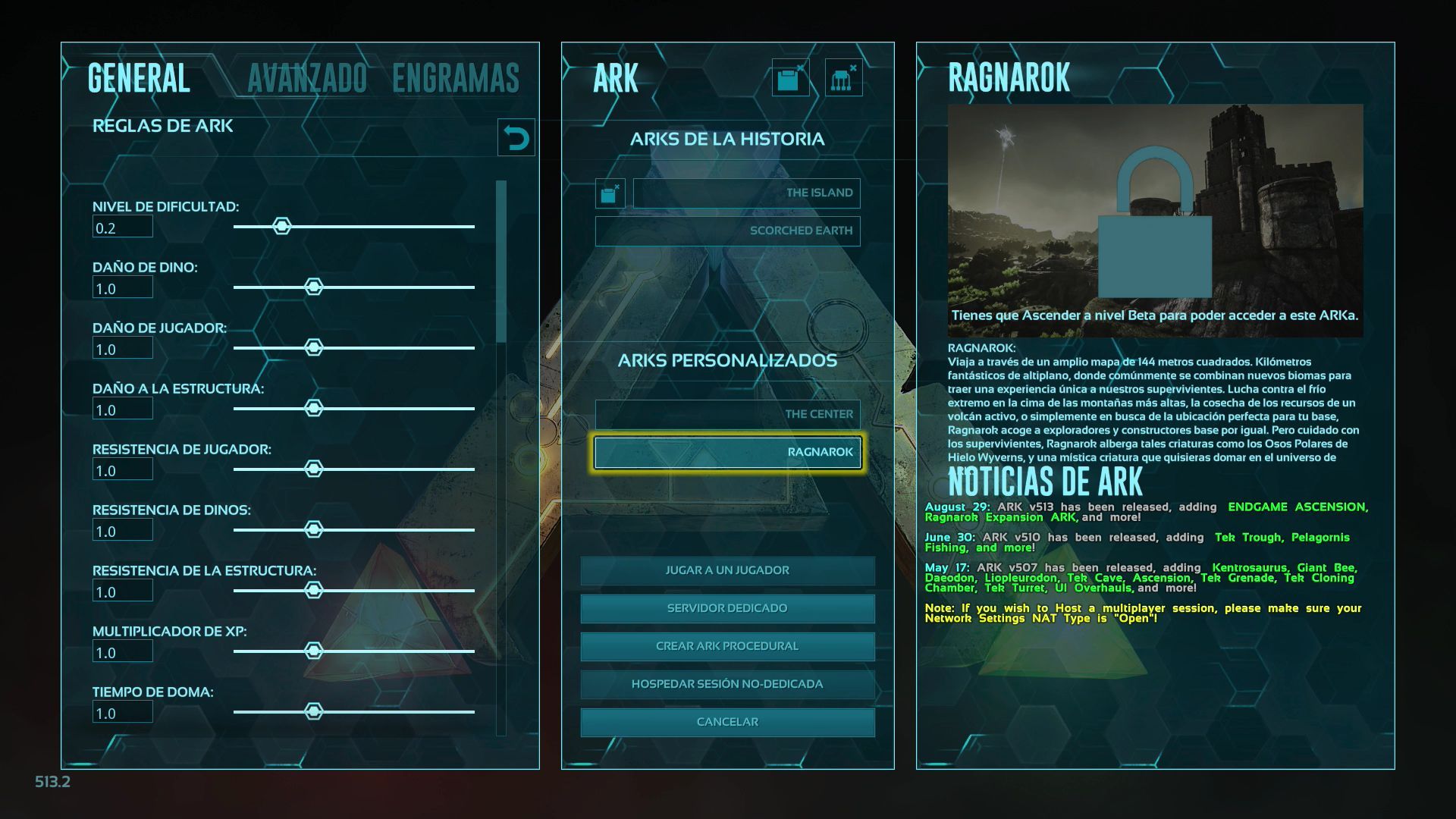 Una vez introducido aparecerán en pantalla los créditos de Ark<: Survival Evolved como si hubieses completado el juego y cuando vuelvas a la pantalla de creación de partida los mapas estarán desbloqueados.