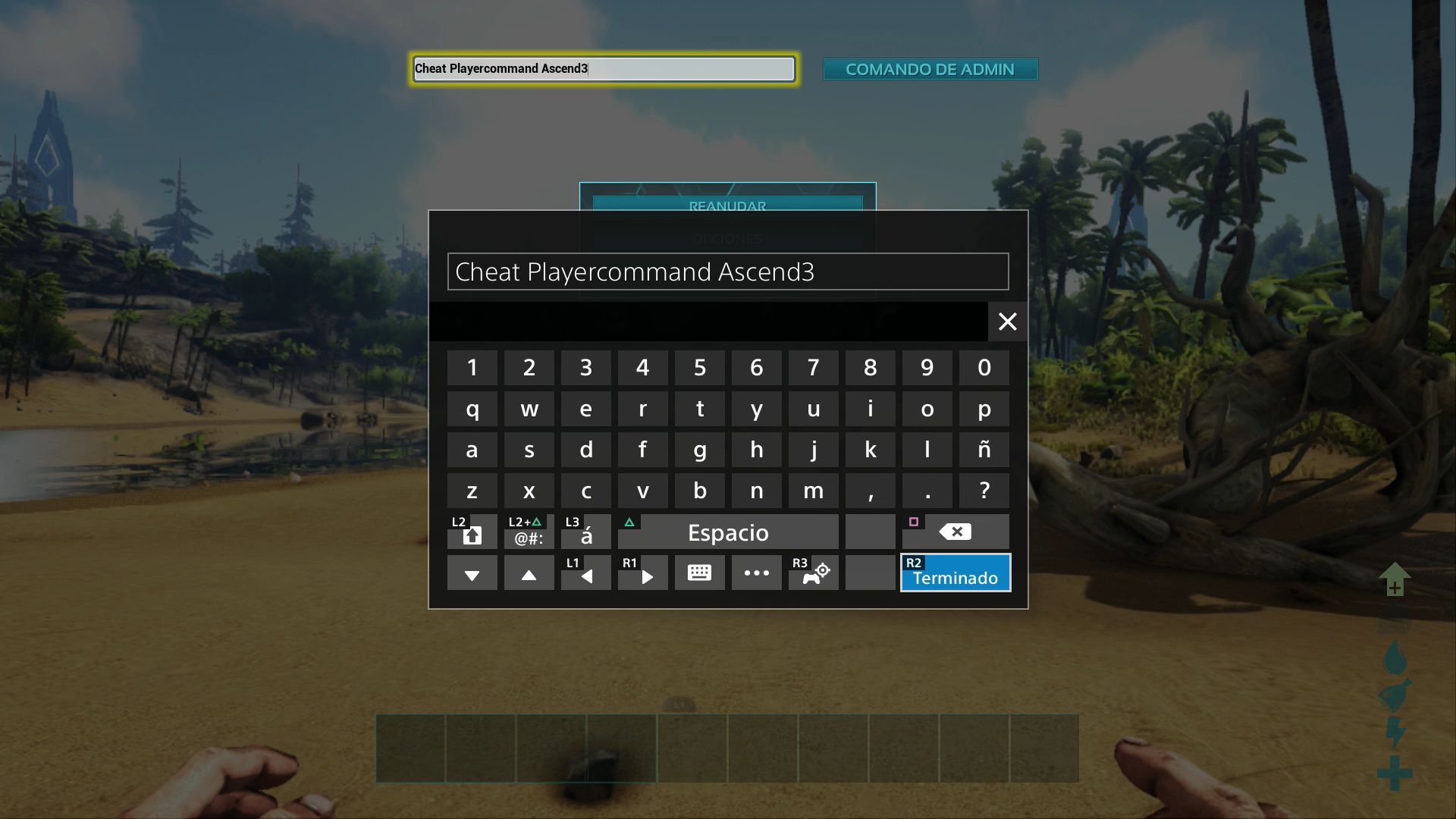 Al hacerlo aparecerá la barra de comando y tendrás que introducir los siguientes trucos según quieras: