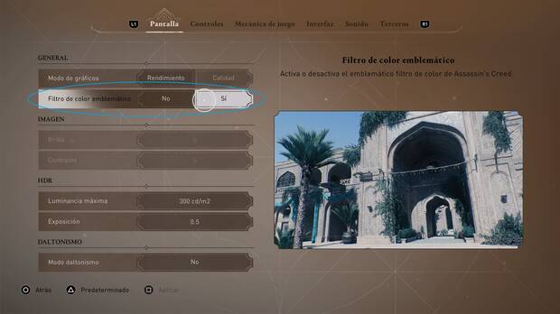 ¿Cómo activar el filtro de color emblemático de Assassin's Creed en Mirage?