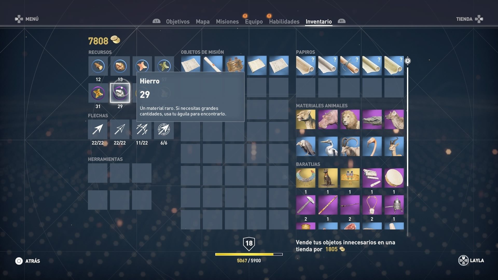 - Carcaj: Mejorarlo aumenta la capacidad máxima de flechas, lo que es esencial si lo que nos gusta es jugar con el arco y usarlo a menudo. Especialmente se nota en el caso del arco depredador, que empieza con solo cuatro flechas como máximo.