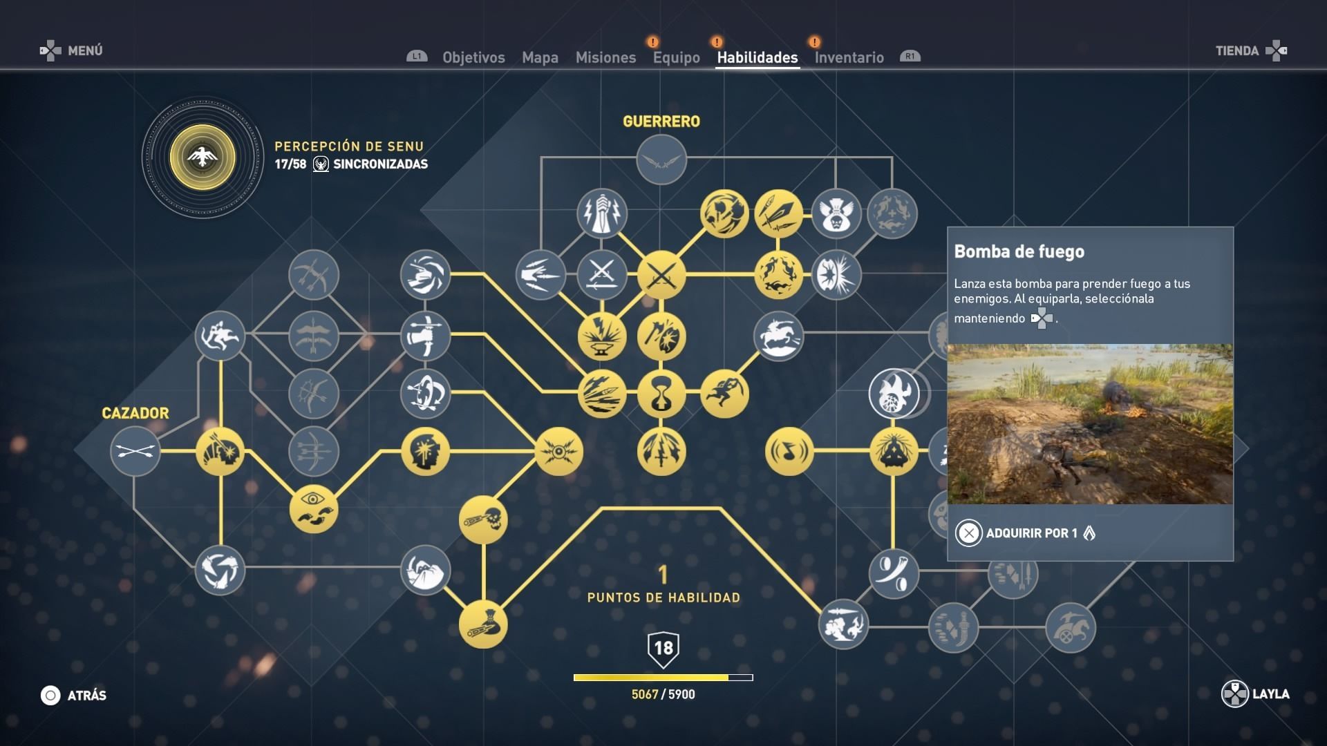 El sistema de habilidades Assassin’s Creed Origins ha cambiado y ahora tiene tres ramas diferentes: una dedicada a las armas cuerpo a cuerpo, otra a los ataques con arco y al águila Senu, y una tercera a habilidades con las herramientas (bombas, dardos envenenados) y a la negociación con las tiendas. Algunas habilidades son requisitos para otras. Consulta todo sobre el sistema de habilidades.